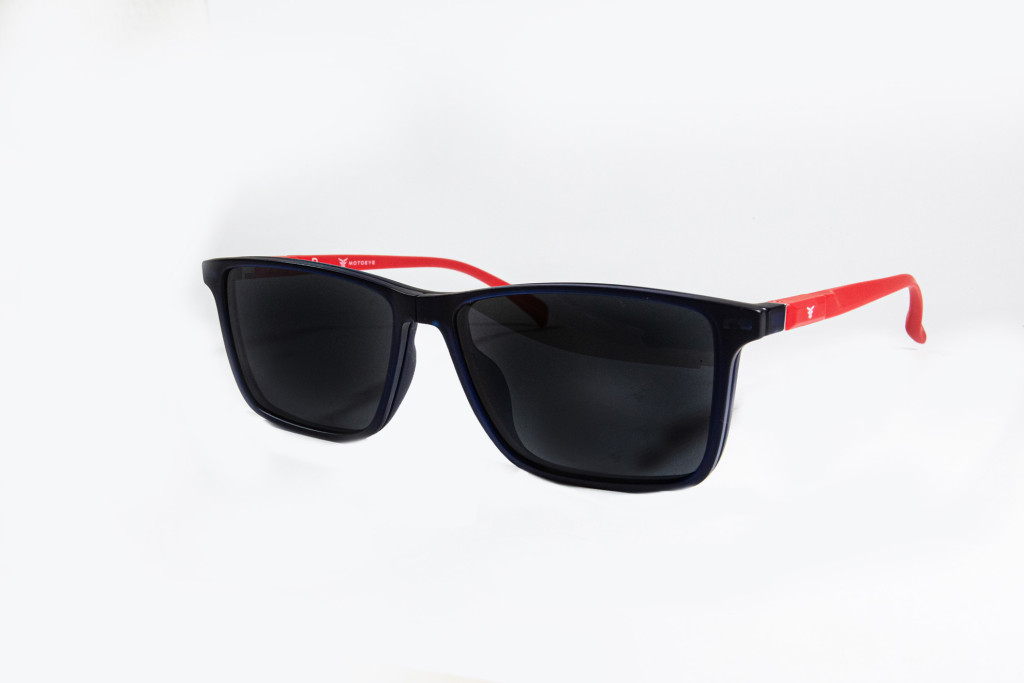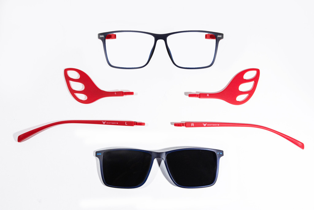 MOTOEYE H0001-C4 Átlátszó kék-Piros Szemüvegkeret - Cserélhető szárakkal, sisakbarát kialakítással - Polarizált UV 400 mágneses napszemüveg előtéttel - Ultra könnyű alapanyagból - Szögletes forma - M, L méretű sisakhoz ajánlott
